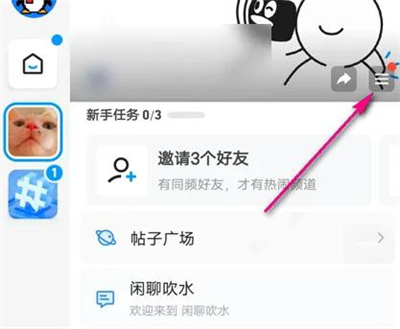 2. 接着在频道页面的右上方点击三条横线的图标打开。