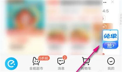 1. 首先点击打开手机中的饿了么软件进入后,在主页面的右侧部分找到“免单”的活动图标入口,在上面点击打开。
