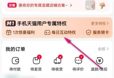 2. 来到我的页面里后,在中间部分的用户专属特权下点击“每日互动特权”这一项打开。
