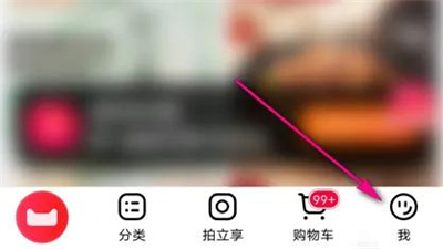 1. 首先点击打开手机中的天猫APP进入到主界面后,在底部的选项栏里点击最右边“我”这一项切换进入。