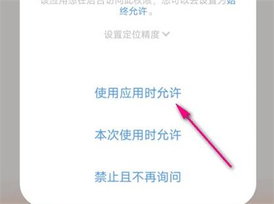 3. 这时页面中会弹出请求访问位置信息的提示,点击选择“使用应用时允许”这一项。