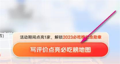 4. 页面跳转进入后,在底部会看到有一个“写评价点亮必吃榜地图”的按钮,在上面点击。