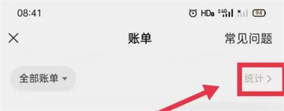 7. 最后在账单明细里的右上方点击“统计”,进入后就可以查看详细内容了。