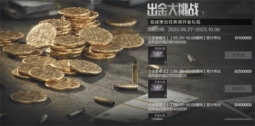 本次活动给玩家准备了一个金色收藏品的活动,玩家要参加游戏新版本的活动,可以获得相应的金色收藏品,这次官方是特别大方,给玩家准备了很多金色收藏品。玩家不需要担心,因为名额满了的问题没有办法领取到相应的奖励。本次活动玩家需要完成相应的指定任务,这个指定任务持续到10月6日,玩家完成任务才能够领到开金礼包。