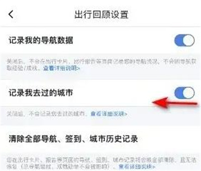 6. 最后,进入的页面里在“记录我去过的城市”后面去点击开关按钮,把它设置为关闭状态就不会再记录去过的城市。