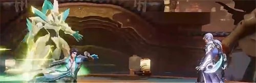 这名曙光守护者是一名近战系的强者,而且在攻击的时候,还会与身后的一名天使一同攻击,而且他的攻击范围很广,对地面上的机动速度也很快,可以将自身的优势发挥得淋漓尽致。可是,他的攻击技能再强,那也是有 CD的,随便用出来,那也是给对手钻了空子。因此,他要尽可能的拉开和对方的距离。