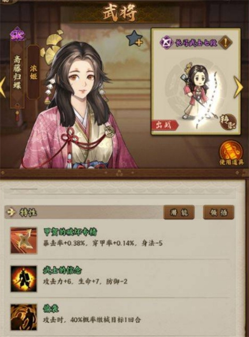 例如,长枪武将可以获得反击特性,谋士则可以获得灵能激发,而舞姬可能具备命魂等特性,这些都可以让武将产生质的变化。目前,获得特性的方法主要有两种。首先,玩家可以使用"基础日常特性卡组",通过游戏中的日常任务和各种活动来获取这些卡片。在武将出身页面,点击【领悟】,玩家就可以使用特性卡来让武将获得相应的特性。第二种方法是在相亲过程中查看潜在配偶的特性,通过结婚的途径,将对方的特性传承给下一代。