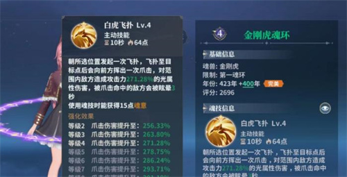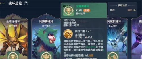 金刚虎魂环除了可以积累魂意和进行伤害加成之外,还可以连我们的眩晕技能延长时间,当我们装备金刚虎魂环之后就可以看到主动技能的变化形态了,而且这个魂环的年份是可以进行提升,年分越长,它的效果就越好。