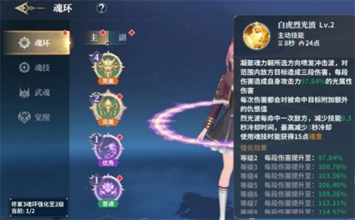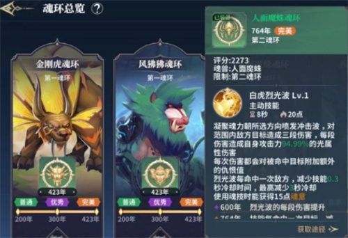 并且这个增幅带有叠加效果。这些次数加在一起,实际上对冷却时间的缩短效果非常不错,最高时甚至可以减少3秒的冷却时间。若达到600年,每一段伤害都将提升;而达到764年时,每次技能击中目标都将减少冷却时间。玩家可以根据自己的需求提升魂环的年份,以获得想要的效果。