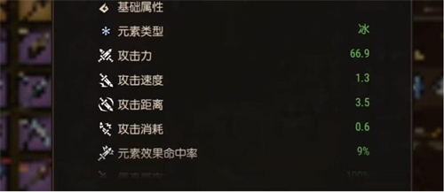霜牙是一把用于近战的武器,它具有冰属性特征。整体外观呈现出一种迷人的冰蓝色调,而在刀柄上方矗立着一颗巨大而冰冻的尖牙,宛如一只古老动物的象征。相较于其他近战武器,霜牙拥有较为适中的攻击速度,每秒攻击1.3次,使它能够在战斗中展现出出色的战斗力。在进行攻击时,它采用的是普通近战武器的惯性劈砍的方式,但是值得一提,与其他武器相比,霜牙的攻击距离要更远一些,使得使用者能够保持一定的安全距离来进行攻击。霜牙的攻击更是高达66.9的攻击力时,能对敌人造成超过60点的冰属性伤害。它和一般的冰属性武器有一个共同的被动,就是在攻击的时候,有一定的几率冻结敌人。