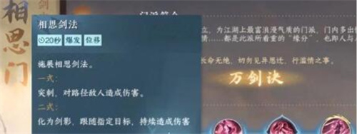 龙门客栈玩家在进入门派之后,想获得技能必须在战斗中不能主动撤离,即使被攻击也不能躲避,而且在副本中失败的次数必须有限。相思门的玩家必须遵守道德,如果与情缘之外的角色有亲密举动,那则获取失败。在进入相思门之后,玩家就可以学习相思剑法了。