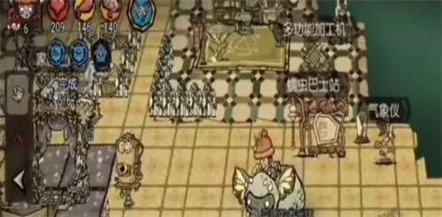 在游戏中,玩家可以与自己信任的伙伴一起探索,一起生存,一起分享物资,一起分享食物,一起围着篝火取暖,一起去野外挑战强敌,一起在危险的饥荒中感受友谊。除了生存之外,他还能在新增加的“公共广场”上与朋友们跳跳迪斯科,玩一些小游戏,让他有一种别开生面的感觉。