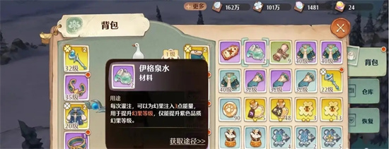 在游戏中,所有的幻境果实都是通过植物激素来获得的,植物激素可以帮助幻境果实升级,而伊格泉水的原料则可以帮助幻境果实升级,每一次使用都可以增加三点能量,但伊格泉水仅限于紫级以上的幻境果实。