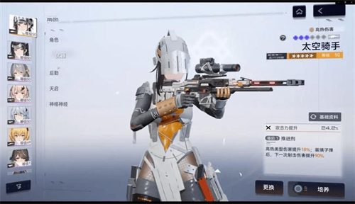 那么点入枪械系统之后,可以查看多种类型武器的相关介绍。而目前步枪武器当中包含了a416f、m2、ak12和d14这四大类,在目前情况下,步枪大概包含了三四十把左右,不同武器所携带的相关属性加成对于不同角色拥有不一样的效果。所以大家在选择的时候可以对照角色的相关被动技能来进行合理搭配。