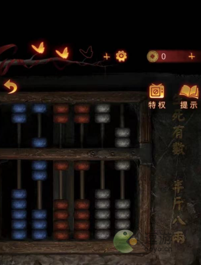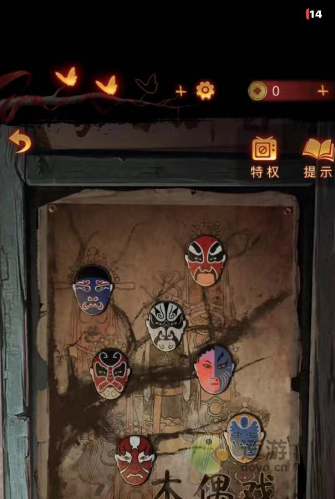 9、回来后将纸钱放在算盘那,有蝴蝶引导,按照花的顺序将阴童子旁边墙上的面具摆放,如图