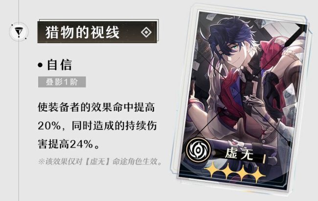 满叠影提供40%命中和48%持续伤害加成,在数值方面是比较常规的,但问题就在于目前比较热门的持伤角色仅有卡芙卡一位,而卡芙卡基本不需要堆命中。