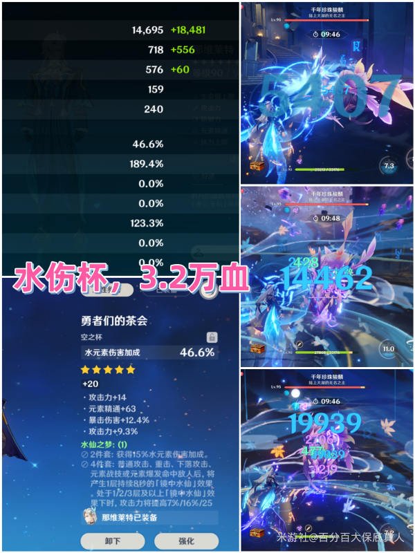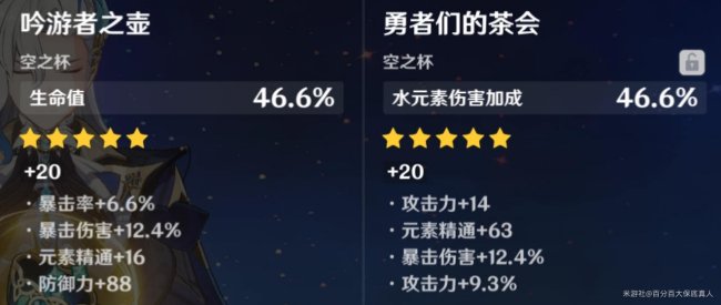 2、高生命值(3万血以上)情况下,同等词条的生命杯较水伤杯会有大概8%左右伤害的差距,此时更推荐水伤杯。