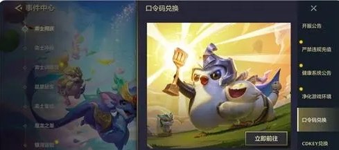 3、找到口令码兑换,点击立即前往输入兑换码即可兑换。
