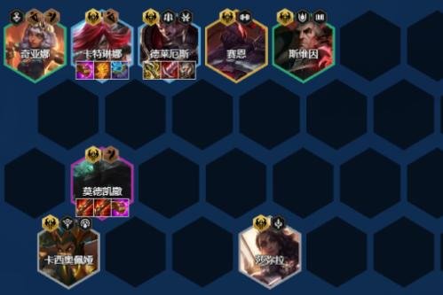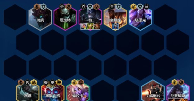 阵容组成茂凯、索拉卡、塔里克、厄斐琉斯(月男)、慎、厄加特、奎桑提、黑默丁格、赛娜;带吸血鬼走连败将血量转化为战力,而且连败经济比较好,低血量选秀会优先出来,装备也不会烂。带吸血鬼后期差不多人人半件狂徒,配合堡垒巨神峰特别肉,很容易拖到飞升时间。