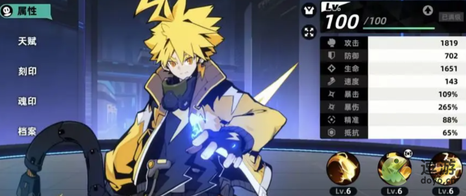 3、天赋百分百加成:攻击111,速度10,暴击10%,暴伤20%,生命64,防御29,精准30%,抵抗30%