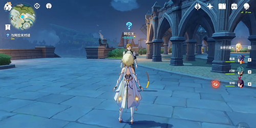 玩家在5点到7点(似乎是这个时间段)到教堂前广场可以找到如下这个人,接取到支线任务在蒙德城内寻找海报和告示牌。