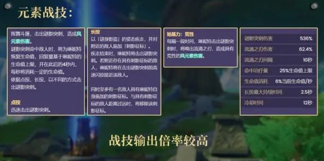琳妮特定位4星风系单手剑角色,辅助能力有但不强,输出能力有但也不强,技能设计比较鸡肋,没有太多亮点,唯独这个被动天赋1的效果很值得说道!