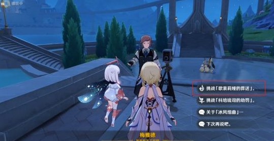 注:冰风组曲有两种挑战,不同挑战给的材料也不一样,需要选择「歌裴莉娅的葬送」才能获得琳妮特所需要的材料。