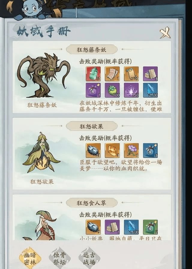 二、妖域一共有三层,每天可以免费领取30点体力了,体力每15分钟恢复1点,探索一,二,三层一次分别需要消耗1,2,3点体力,开局在进入第一层,当探索击杀指定数量妖兽或者消耗2个青冥石可以通过右上角的地图去往下一层,第一层击败两个藤条妖可去往第二层,第二层击败两个盘龙钟可去往进入第三层,探索击败不同妖兽或者或者遇到神秘洞穴,都可获得各种奖励,御灵石,塑魂花还有增加在这个活动中的属性的妖丹,去往第三层可以获得冰魄,同时也会碰到别的玩家,击败别的玩家或者被击败会得到和丢失冰魄,碰到打不过的妖兽和玩家可以标记让队友协助攻击。