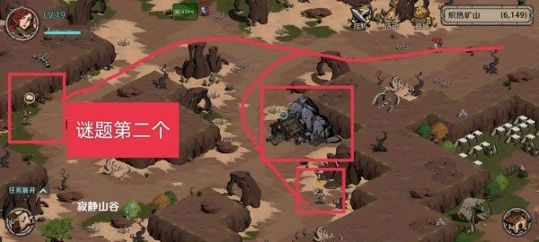 2、之后前往炽热矿山坐标“6,149”位置,向左边方向走可以找到第二个谜题。