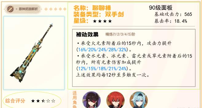 聊聊棒属于是高白值低副属性的搭配了,90级基础攻击力为565,但副属性只有18.4%的暴击率。