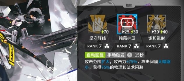 开了这个技能之后杰西卡大概有2000攻1400防 盾牌能到2400防,总伤在4w多,这个在重装中已经很不错了,这个技能也是偏向于高压抗boss的,因为有20发子弹,子弹没打完前相当于伪常驻,所以也可以用一些办法减少她的子弹消耗,比如说头朝蓝门,这样只有怪走到杰西卡脸上才会消耗子弹,而且因为技能加了攻击间隔,正常来说背对着怪能持续40秒左右