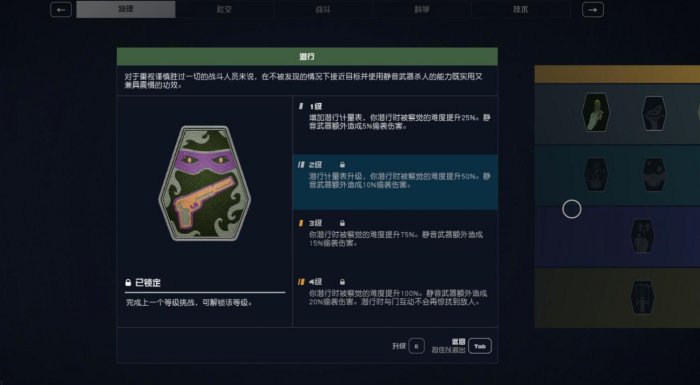 潜行:解锁隐蔽值,蹲下显示。可以方便偷东西。
