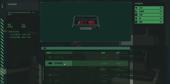 25、加负重;第二次回去和父亲聊天获得爷爷的肉饼配方,听起来惊悚但是效果还不错,+2%经验获取持续120min及一些附加效果;第三次我去陋室碰到了父母来参观,送了一把利文斯通爵士的手枪。后面再去爸爸还会把打牌赢来的一艘飞船送你。