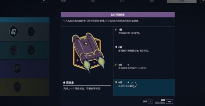 飞行背包训练就是让我们可以起飞一段,很多星球地形比较复杂,有这个赶路还是很方便的,毕竟没有载具全靠腿。