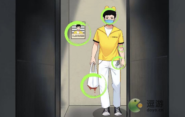 3、接着遇到外卖小哥,点击通缉令、口罩、血水、扳手、胳膊抓痕,选择下一趟