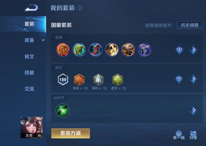 大乔的出装也比较统一,普通人玩别出专精装备,容易起到反效果。大部分装备不要自己换,如果需要梦魇之牙,就在旭日初光后面出,不祥征兆就不用出了。