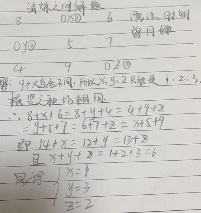 于是我们一起前往幽兰之谷(113,150)找到阿林, 向他寻求帮助。没想到阿林说这对他来说小菜一碟,只是需要我们完成试炼。又到了脑洞大开时刻,需要计算,下图即为结果。