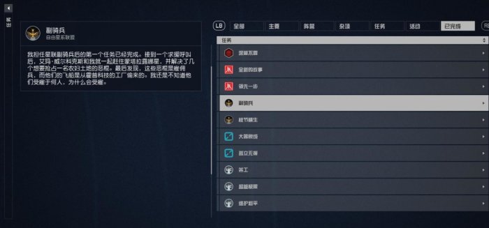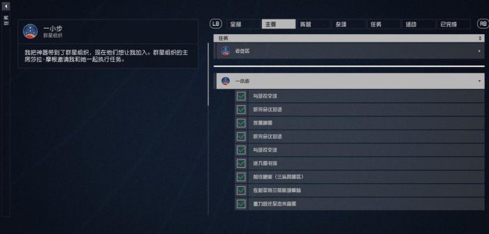 游戏的主线组织,也是我们从矿洞出来后接触的第一个势力,完成主线任务《一小步》后加入群星组织,任务主线,不会错过(除非你一直拖着不做)