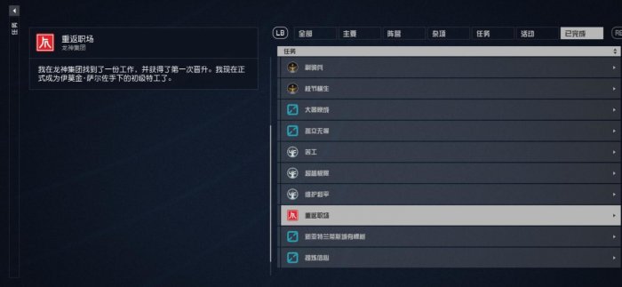 龙神集团坐落于很赛博朋克的霓虹城,加入也很简单,跟着《重返职场》的任务做就能加入