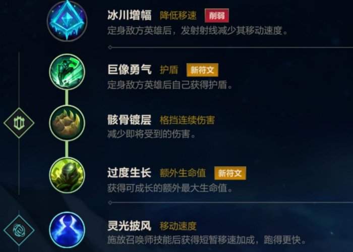 符文主系选择冰川,冰川有减速效果,加上我们的控制技能,可以更好的留人,让队友输出。