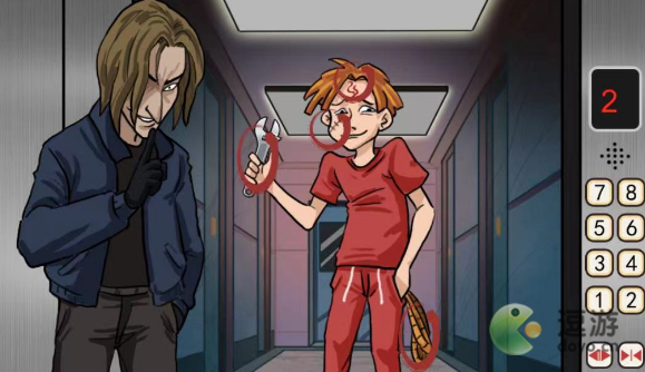 1、汉字找茬王电梯战神,需要在电梯到达前求救,首先第一个场景点击抓痕、血迹、锤子、手套、高跟鞋,选择逃跑
