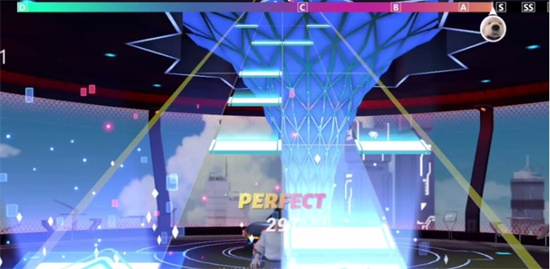 在演出阶段,玩家需要按照屏幕上给出的音符轨道和乐谱点击屏幕。在音符的节拍,大小,颜色,形状都符合的前提下,与队友积极配合完成歌曲的演唱。在这过程中,玩家可以通过触发特殊效果增加音乐演唱的表现力,同时分数也会有所增加。