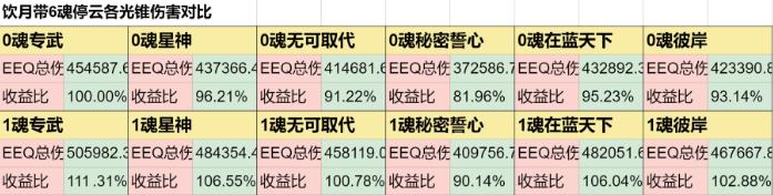 这里就分别用1魂和2魂的循环总伤进行对比,另外由于非专武需要挨打才能满足EEEQ的循环,所以这里干脆引入一个满魂停云来让所有光锥的循环都变成EEQ。