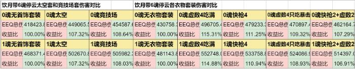 根据以上数据,可以看到饮月2魂提升率非常之大,6魂次之。5魂提升率较小。所以这里建议有预算可以抽到2魂。不过实战中由于战技点的限制,2魂的提升率应该不会这么夸张,但至少也有30%。