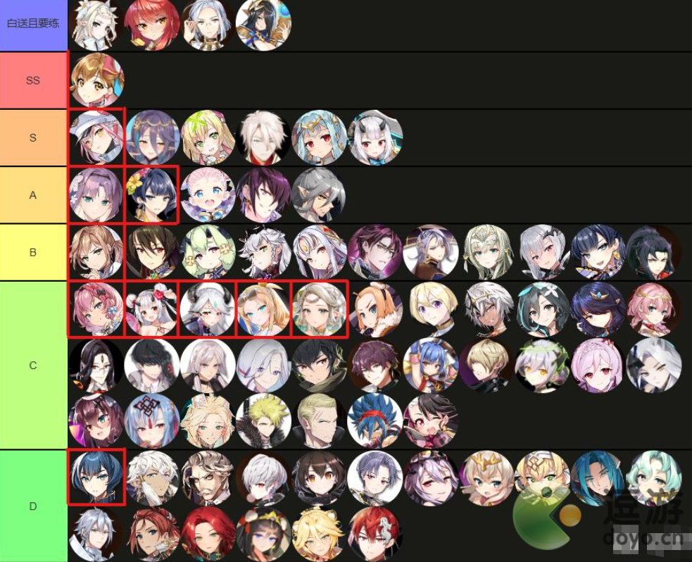 5、B级强度:艾迪妮(圣女)、瑟琳(阿姨)、艾莲西雅(姨妈龙,小姨妈)、塞西莉亚(龙骑)、艾雷娜(水琴)、凯隆、琦世(74)、佛里蒂丝(火双子)、塞纳、维尔罗娜(木扇)、维德瑞(木25)、