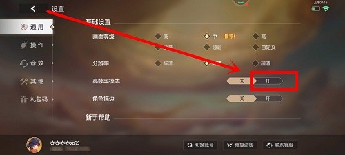 3.在页面中找到高帧率模式选项,点击开按钮进入。