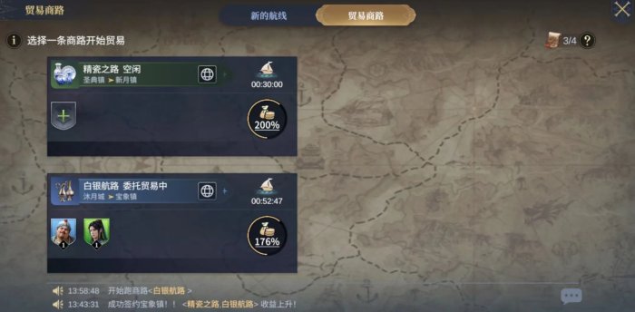 在《大航海时代:海上霸主》中,提督们在开辟完整航线后,便将解锁贸易商路玩法。派遣航海士驾船出海,在各个城市间航行贸易,为港口带来丰富的物资,加速发展。