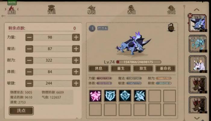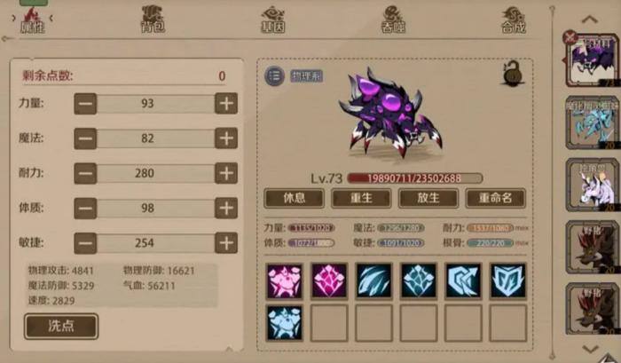 3、宠物吞噬,吞噬一般用于魔化宠物,由于魔化宠物资质基因都远高于普通宠物,氪佬可以把魔化当成主力,这个时候就有一个问题,宠物不断变化,那我开局就培养魔化宠物的基因等,那不是浪费了吗,这个时候就可以用吞噬,吞噬会继承原有的等级基因,注意魔化只能被魔化宠物吞噬。