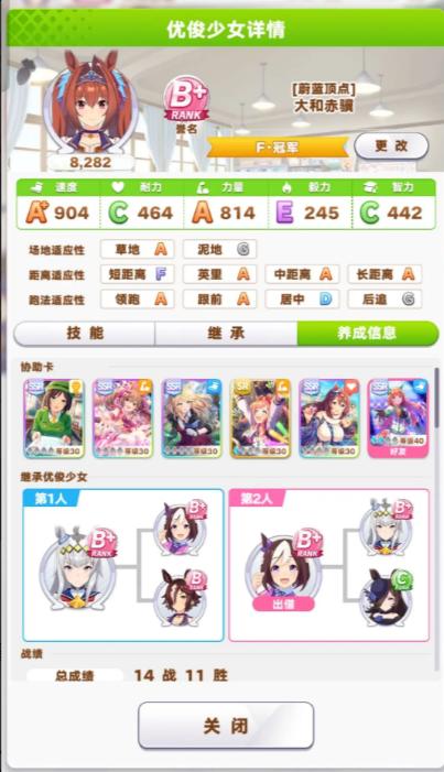 前期主点速度,因为前期都是英里赛。英里赛跑完,开始慢慢点力量。保证速力差距不是太大就行。最后ura的时候,速力可以达到a,就稳了。
