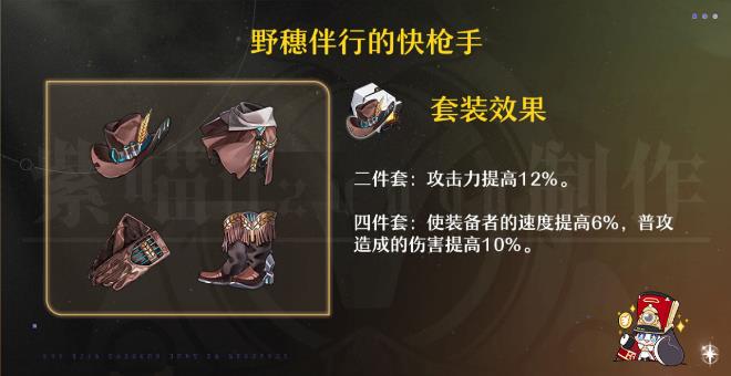 解析:这个套装提供攻击力加成、速度加成以及普攻伤害加成。
